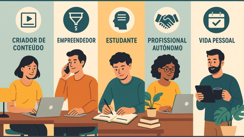 A seguir, você vai conhecer situações reais em que a combinação de Notion + IA faz uma diferença absurda na rotina de quem empreende, estuda, cria conteúdo ou apenas quer mais tempo livre.