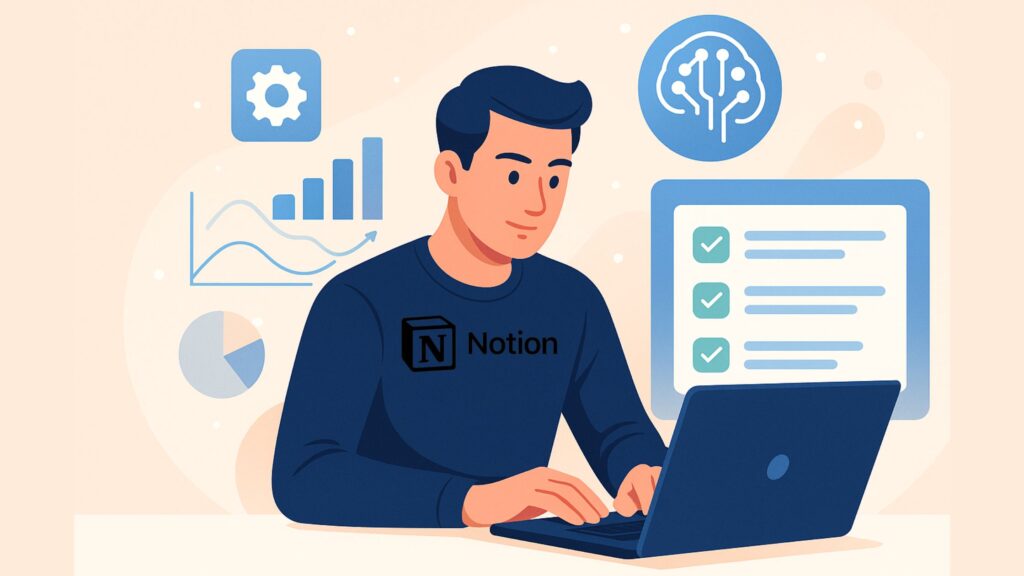 Agora, tudo isso pode ser feito no mesmo ambiente do Notion com Inteligência Artificial — sem códigos, com agilidade e com um toque pessoal.